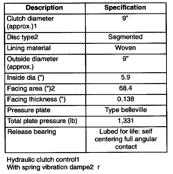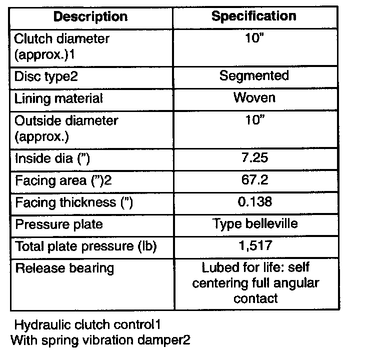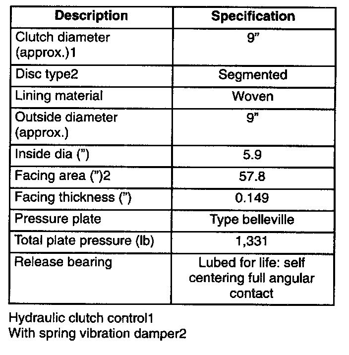 CLUTCH SPECIFICATIONS (4.0L)