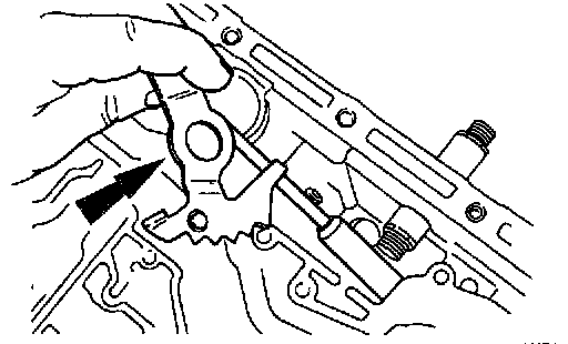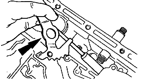 1. Align the flats of the manual valve inner lever with the flats on the manual control lever shaft. Install the manual valve inner lever and parking lever actuating rod onto the manual control lever shaft.