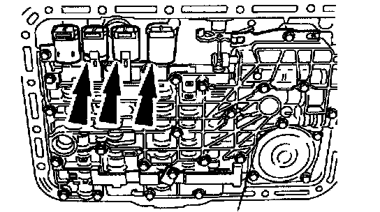 Caution The TCC solenoid and converter modulator valve may pop out of its bore. This may damage the solenoid or converter modulator valve.