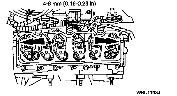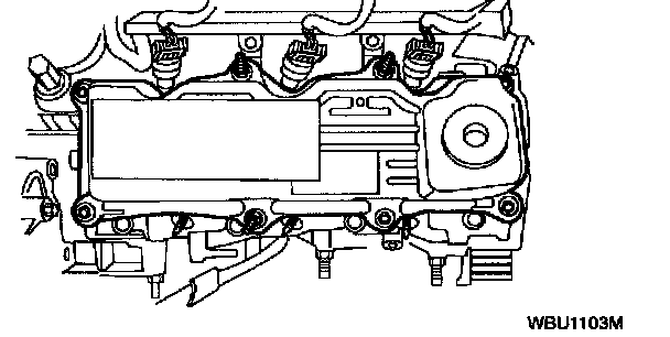 9. Remove the two bolts and the six stud bolts and remove the valve cover.
