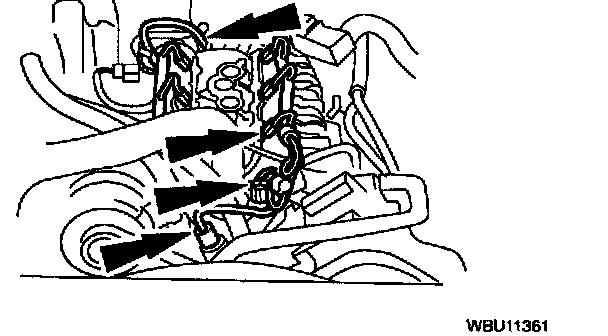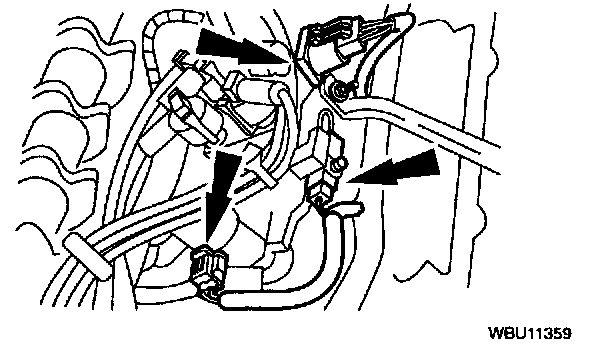 4. Disconnect the radio ignition interference capacitor, ignition coil and EGR solenoid connections.