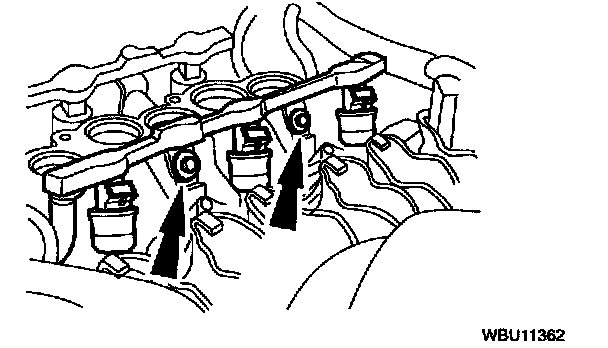 8. Remove the fuel rail and the fuel injector as an assembly.