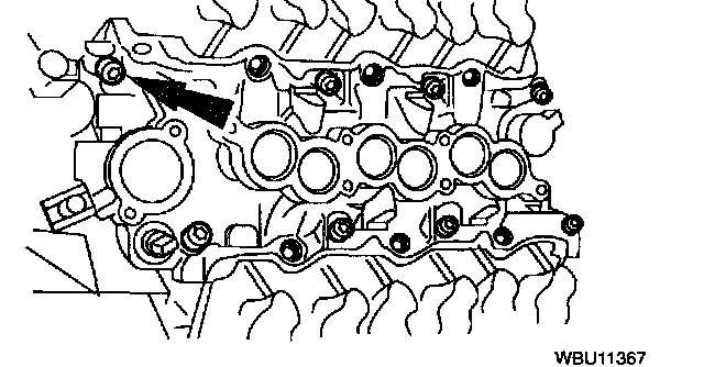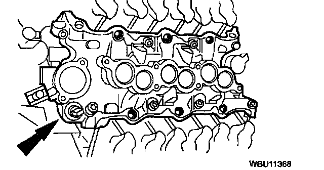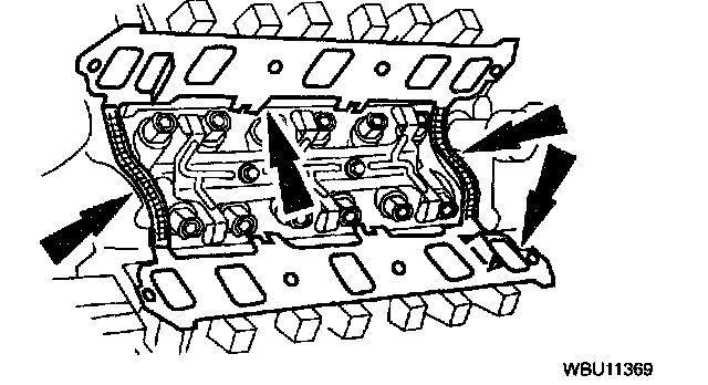 1. Apply a drop of silicone sealant at the four cylinder block - to - cylinder head seams.