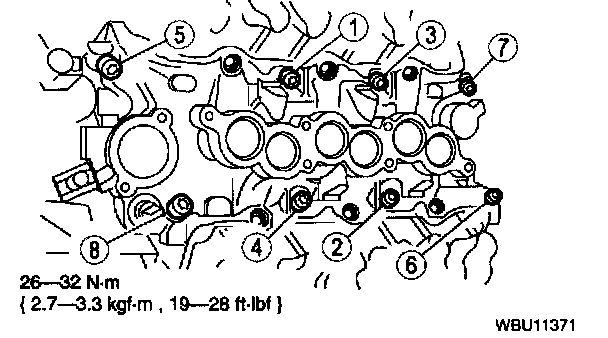 1. Install the bolts and tighten in the sequence shown.