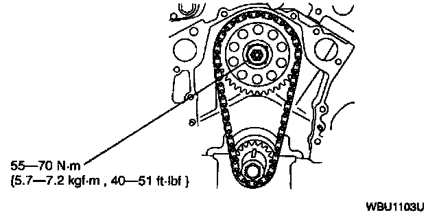 4. Remove the timing chain, camshaft sprocket and crankshaft sprocket as an assembly.