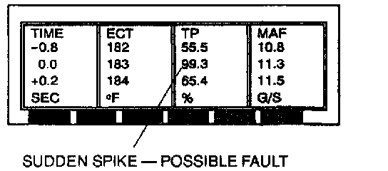 4. Table format: Scroll through the PID data while analyzing the information. Look for sudden drops or spikes in the values.