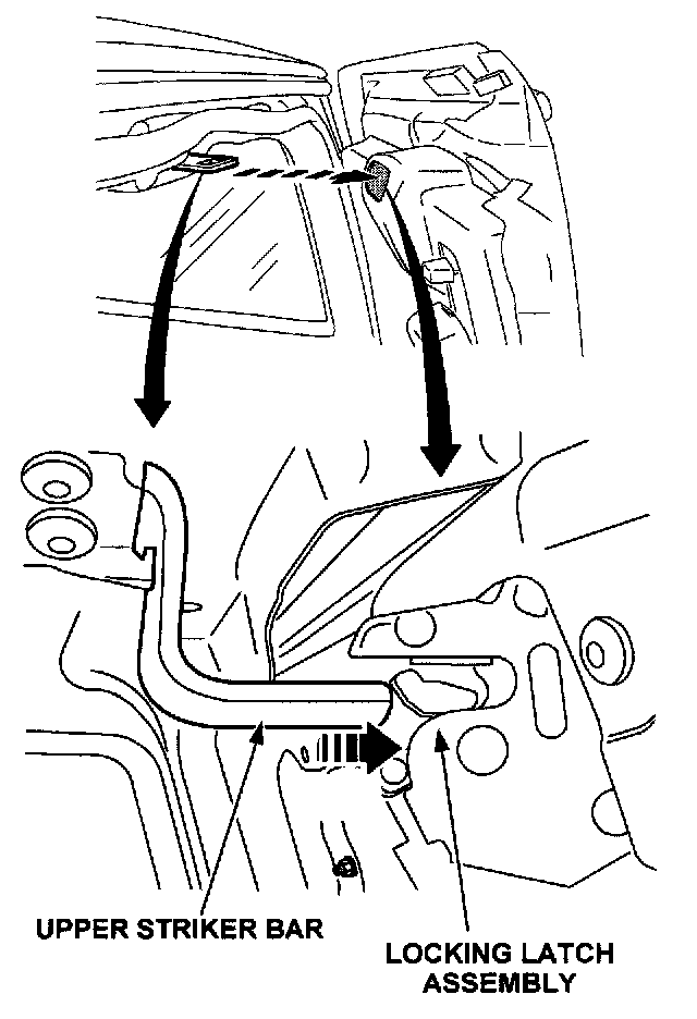 ^ If striker bar and locking-latch mechanism meet correctly, perform additional diagnostics to determine the source of the noise. See Workshop Manual (section 09-01I TROUBLESHOOTING [BODY SYSTEMS]).