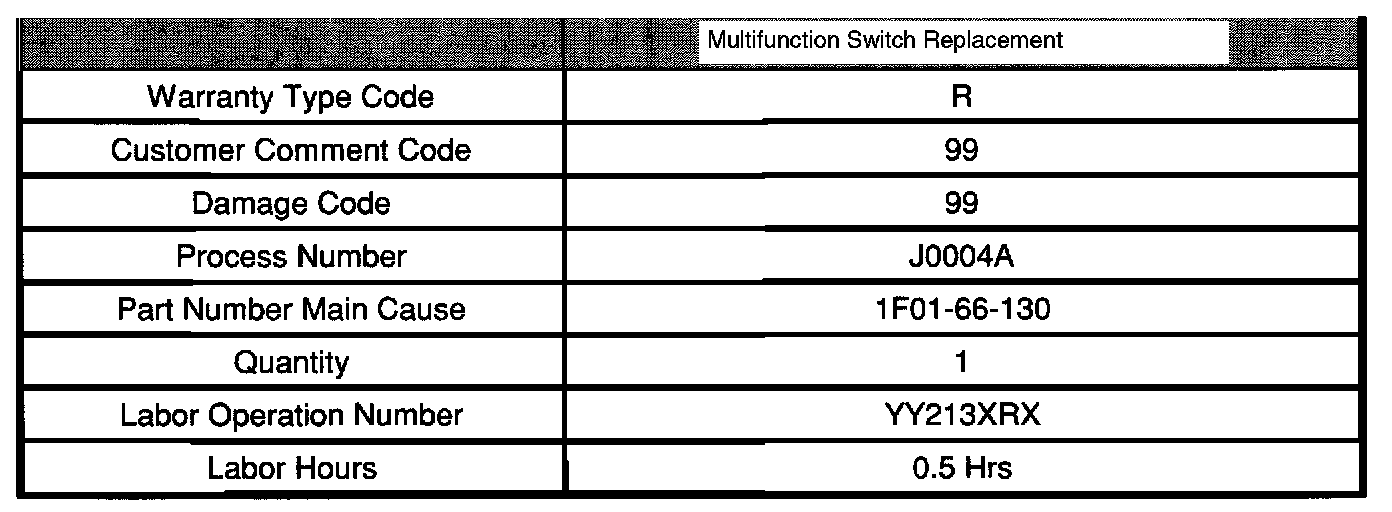 CONDITION OF CONCERNOn some vehicles, there is a possibility that the front windshield wipers may operate while the multifunction switch is in the "OFF" position. Wipers may also operate when activating the turn signal lever. Additionally, the windshield wiper "High" speed operation may also be affected.