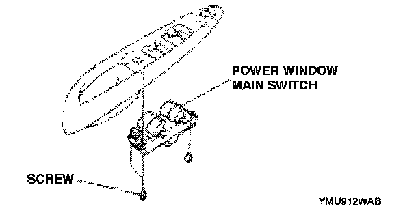4. Remove the screws, and remove the power window main switch.