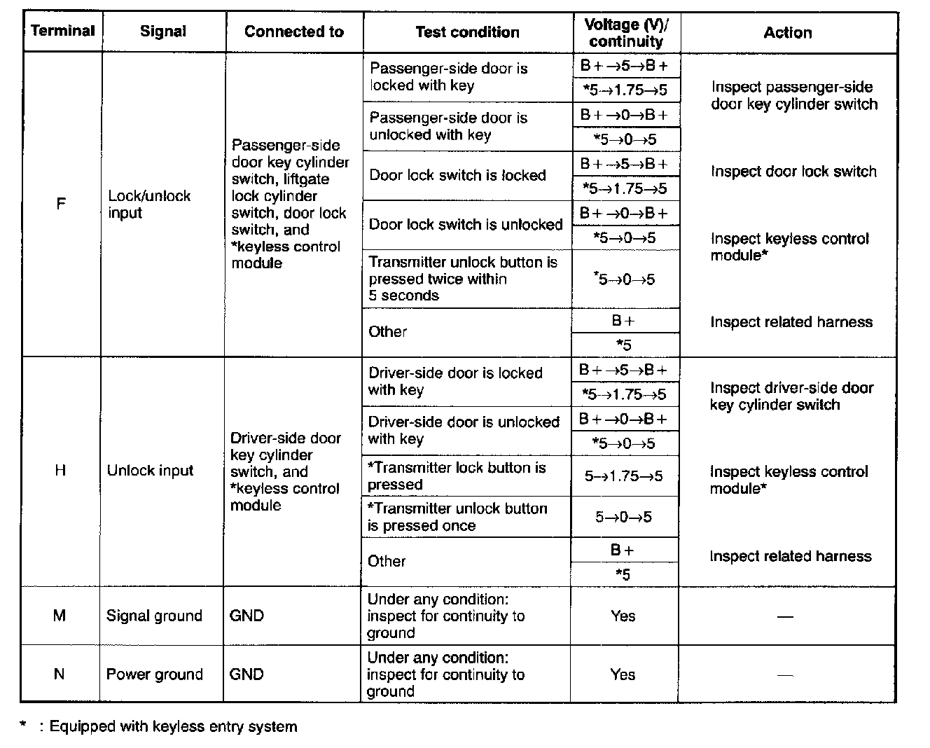 DOOR LOCK CONTROL MODULE INSPECTION