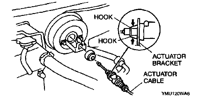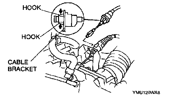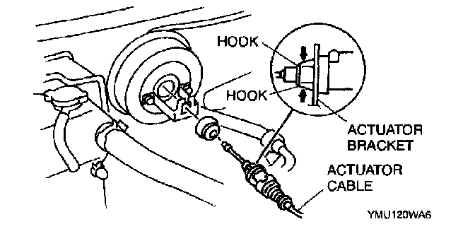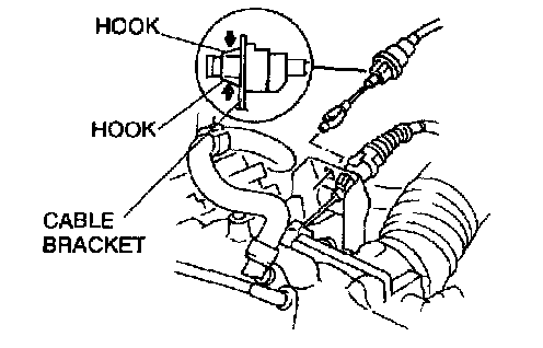 REMOVAL1. Squeeze the hooks of the grommet, and remove the actuator cable.