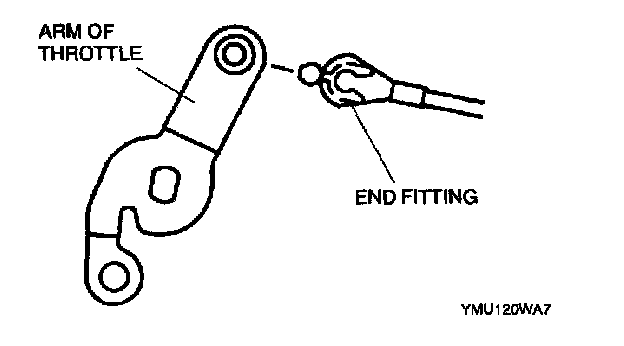2. Remove the end fitting of the actuator cable from the arm of the throttle.