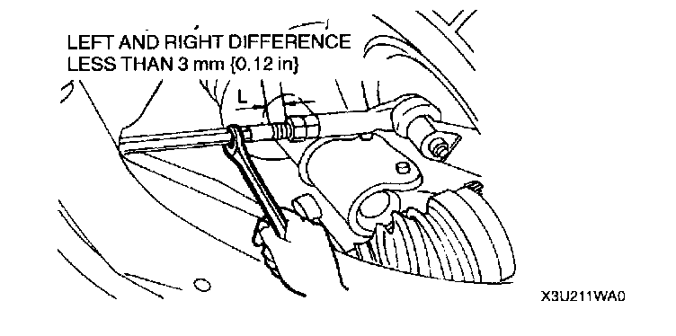 4. Turn the tie rods equally to provide the correct maximum steering angle.