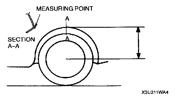 6. Measure the height from the center of the wheel to the fender brim. The difference between the left and right measurement must not exceed 10 mm (0.39 inch).