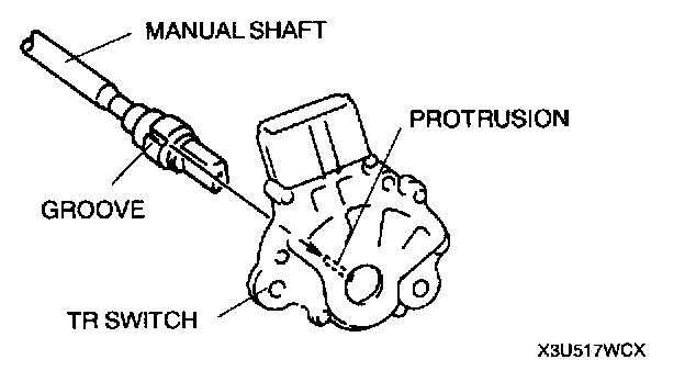 11. Install the TR switch while aligning the protrusion and groove as shown.