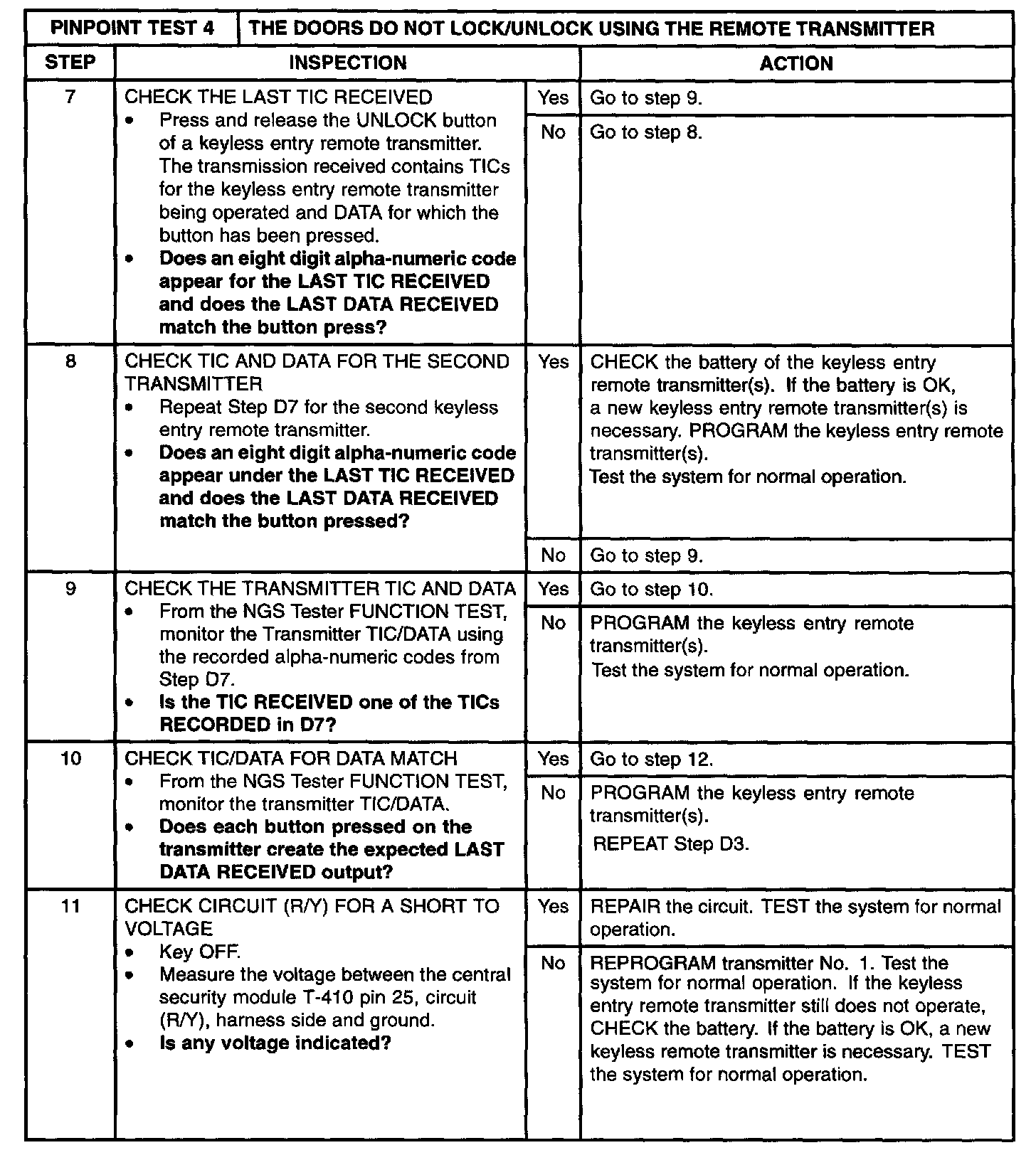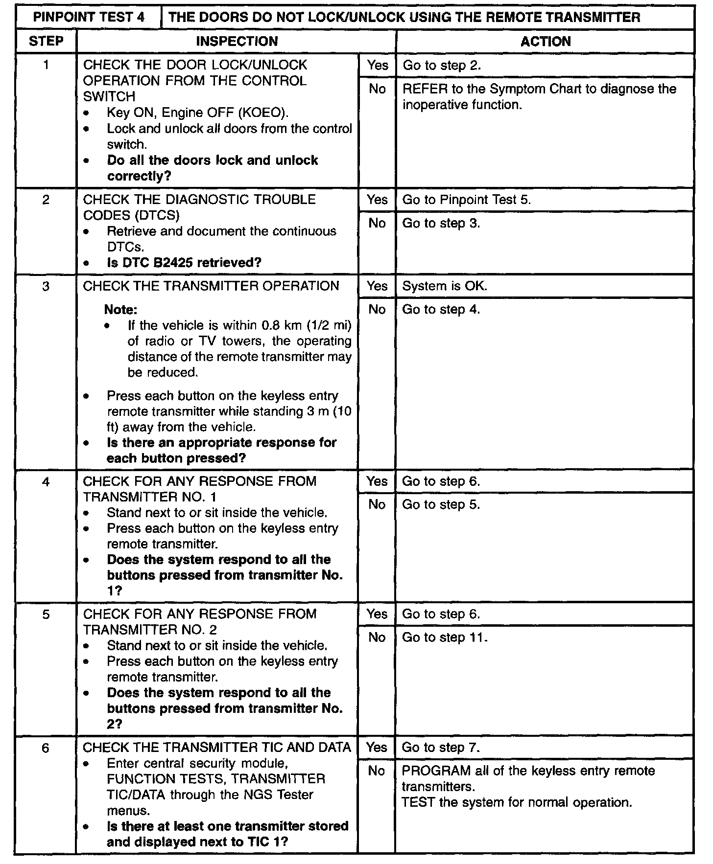 4. the Doors Do Not Lock / Unlock Using the Remote Transmitter