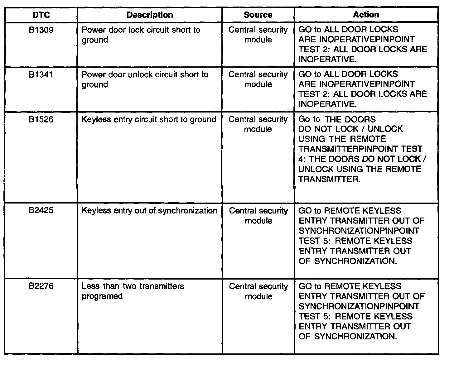 Central Security Module Diagnostic Trouble Code (DTC) Index: