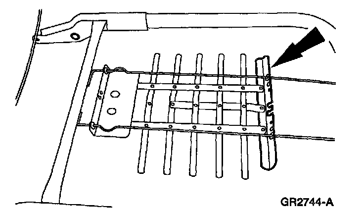 3. Unhook the lumbar support adjusting cable from the positioning bracket.