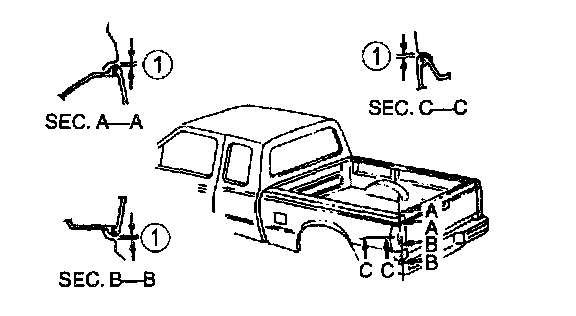 3. Inspect the clearance between the outer side body panel and the top, bottom and the forward portion of the rear lamp assembly.