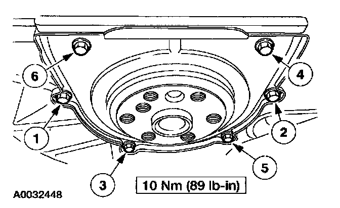 7. Tighten the rear main oil seal bolts in the sequence shown.