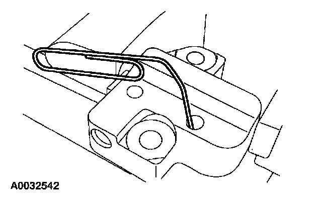 23. Install a paper clip into the hole in the tensioner housing to hold the ratchet assembly and the plunger in during installation.