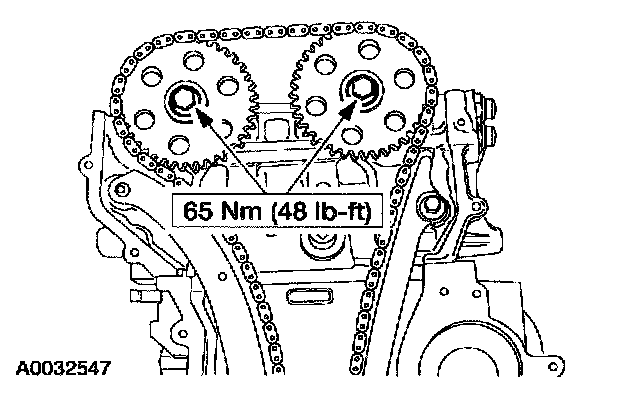 Install the camshaft sprockets and the bolts. Do not tighten the sprocket bolts at this time.