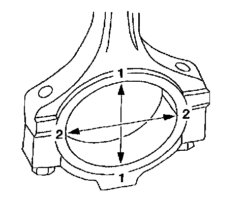 1. Tighten the bolts to specification, then measure the bore in two directions. The difference is the connecting rod bore out-of-round. Verify the out-of-round is within specification.
