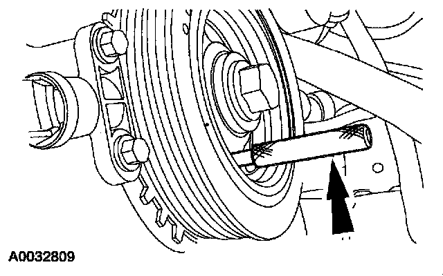 11. Install an M6 bolt in the crankshaft pulley. Tighten the crankshaft retaining bolt in two stages.