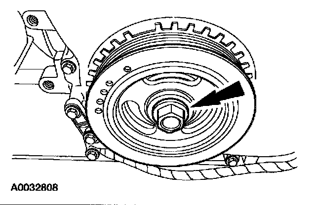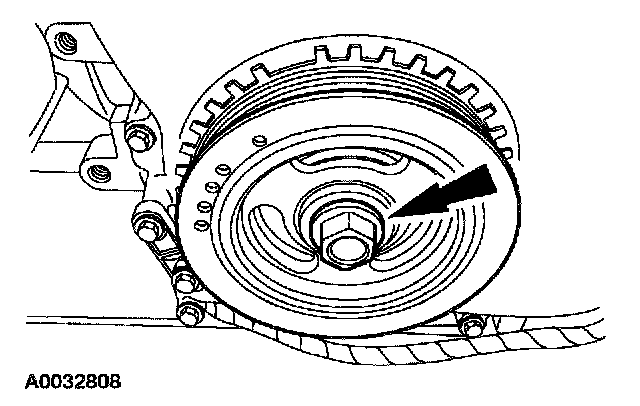 10. NOTE: Do not reuse the crankshaft damper bolt.