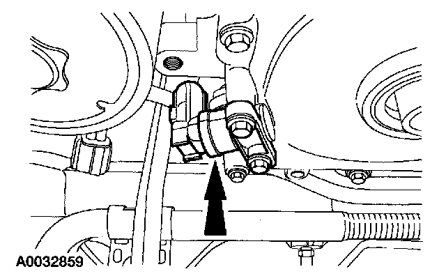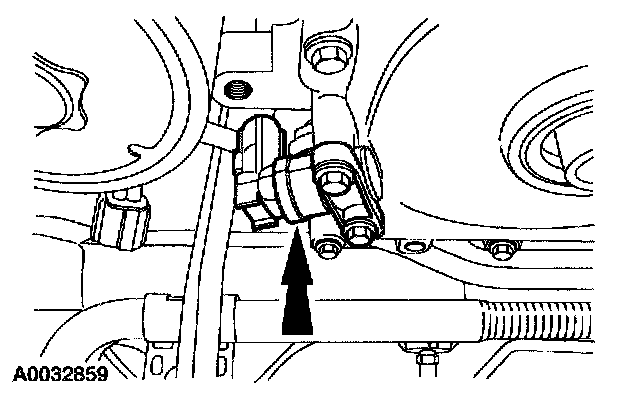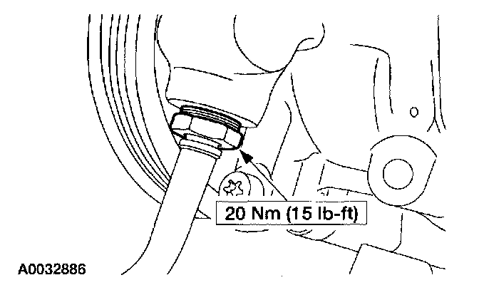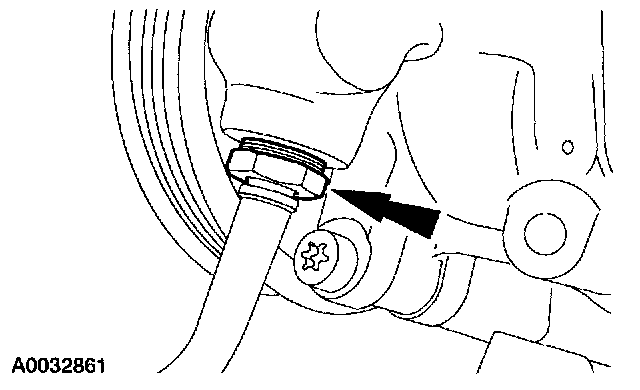 14. Disconnect the power steering high pressure hose. Remove the nylon O-ring.