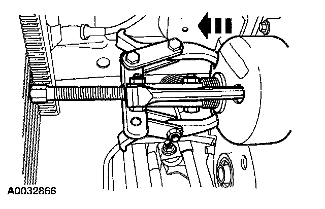 Using a threejaw puller, remove the fan drive pulley.