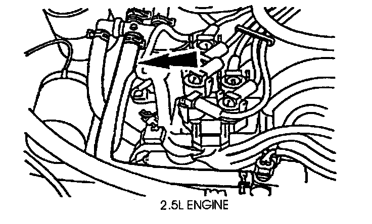 4. Remove the heater hose from between the water control valve and the water pump.