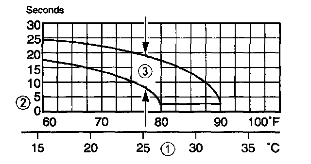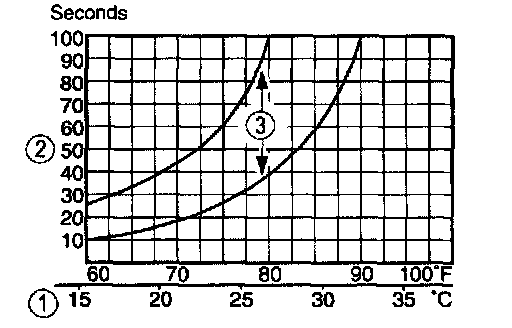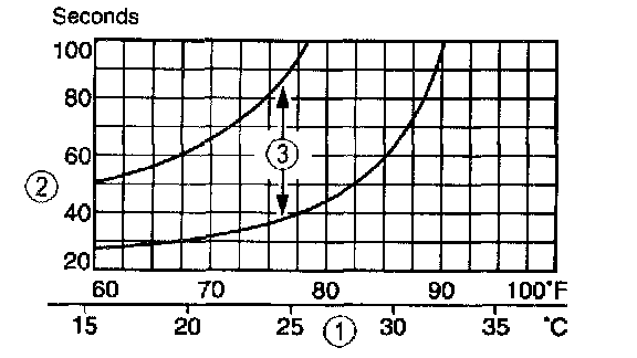 3. The system performance is acceptable when the recorded time falls between the upper and lower limits shown.