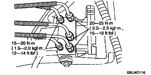 4WABS HYDRAULIC UNIT REMOVAL/INSTALLATIONWarning: Brake fluid contains polyglycol ethers and polyglycols. Avoid contact with eyes. Wash hands thoroughly after handling. If brake fluid contacts eyes, flush eyes with running water for 15 minutes. Get medical attention if irritation persists. If taken internally, drink water and induce vomiting. Get medical attention immediately.