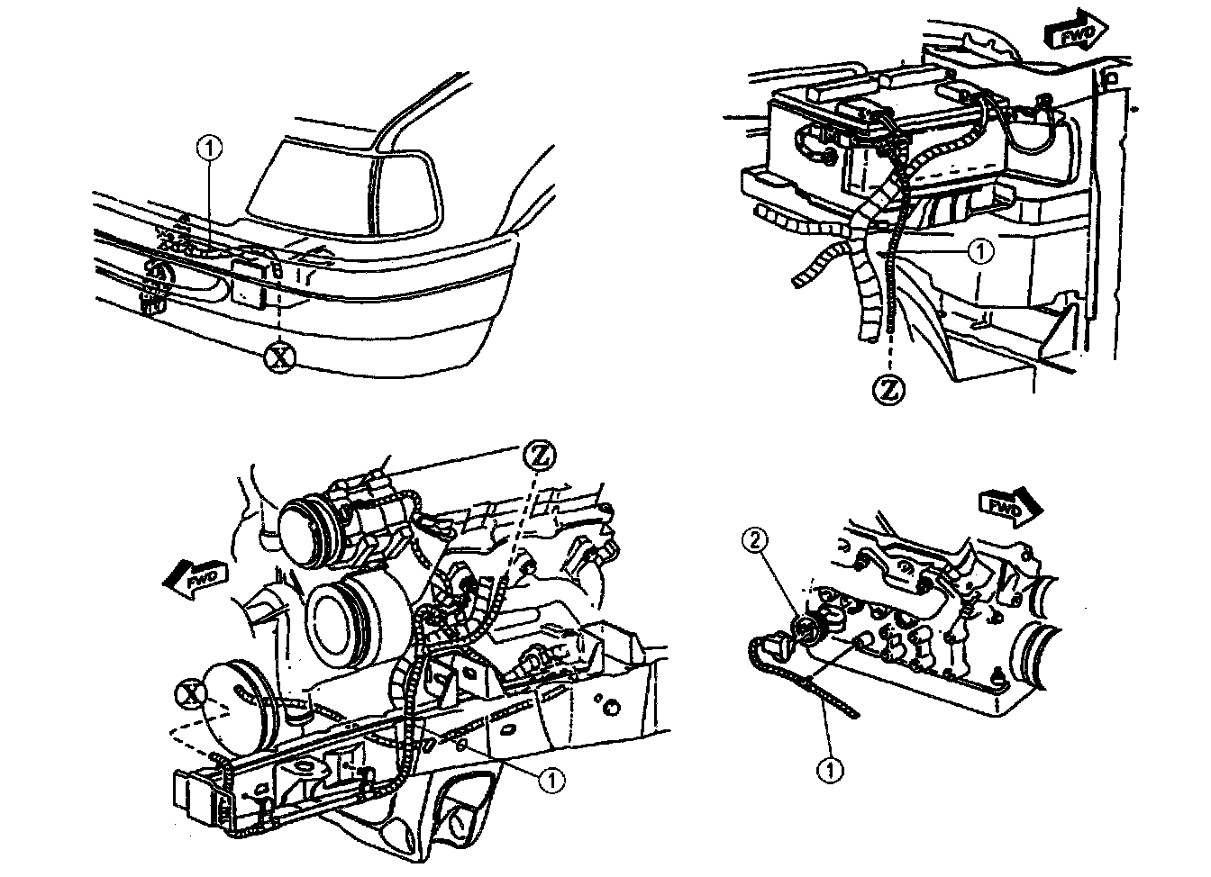 Use door trim panel removing tool or equivalent to remove wiring from battery tray, inner fender, engine mount brackets and cylinder block.