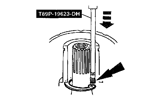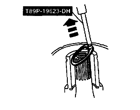 4. Insert the tip of Snap Ring Remover 412-063 (T89P-19623-DH) or equivalent into one of the snap ring eyes.