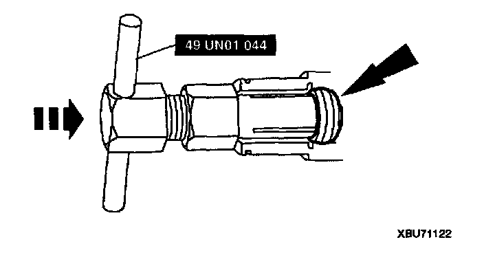 2. Place the shaft seal on the Shaft Seal Protector SST49 UN01 045. Lubricate the shaft seal and the special tool with refrigerant oil.