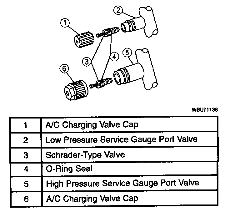 - Always install the A/C charging valve cap on the service gauge port valves after repairing the refrigerant system.