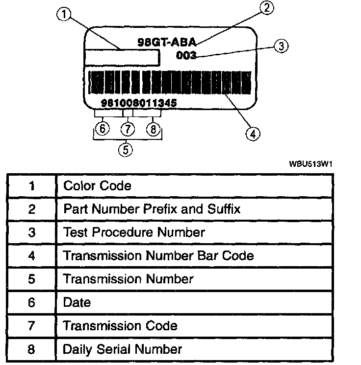 All vehicles are equipped with a Vehicle Certification Label, located on the driver side door lock post. Refer to the code in the space marked TR. For model, service ID level or build date information, refer to the transmission service ID tag located on the transmission case.