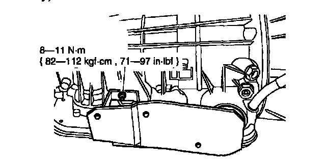 6. Position the transmission modulator heat shield on the transmission and install the nut (5R44E/5R55E only).