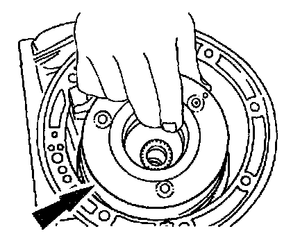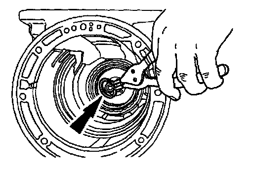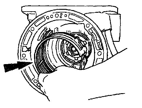 - Install the center support snap ring with the tapered side facing up.