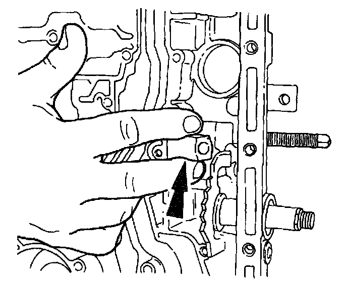 CAUTION: Use care not to damage the oil pan rail surface when installing the retaining pin.