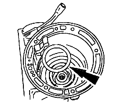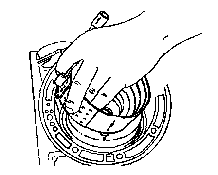 NOTE: Check black oxidized side during removal to ensure correct placement during reassembly. Black oxidized side must be toward planetary assembly. The uncoated side must face up.