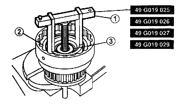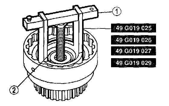 - Do not fully depress the clutch spring compressor or damage to the spring retainer may occur.