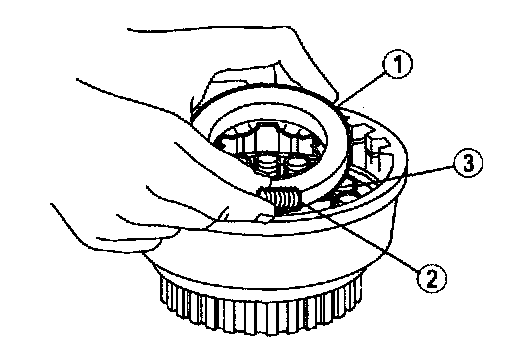 (2). Install the forward clutch piston spring retainer.