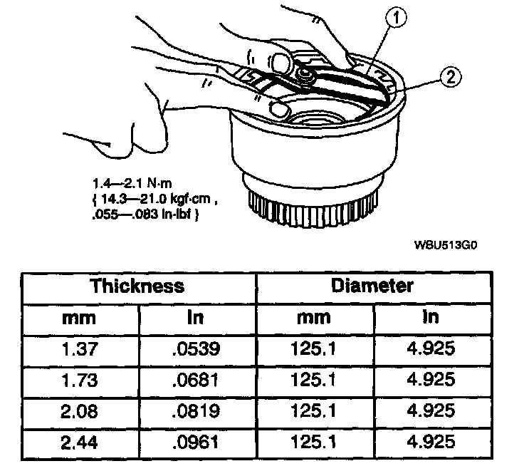 (3). If the clearance is not within specifications, install the correct size snap ring.