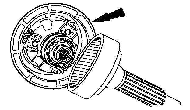 2. Install the overdrive planetary gear carrier into the center shaft and front ring gear.