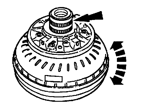 2. While holding the oil pump support stationary, rotate the torque converter clockwise and counter~lock- wise. The torque converter should rotate freely with no signs of scraping. If there are signs of scraping, replace the torque converter.