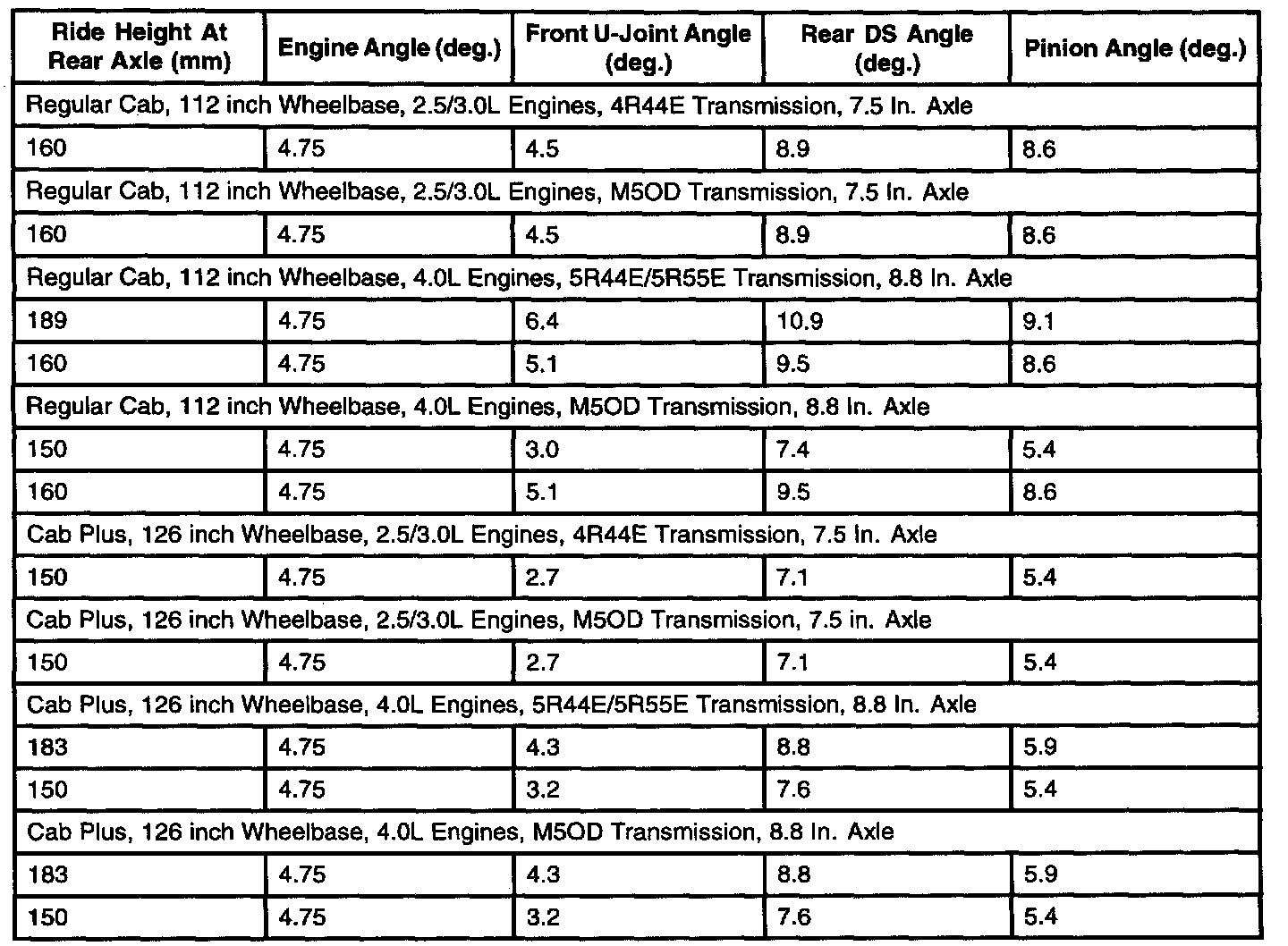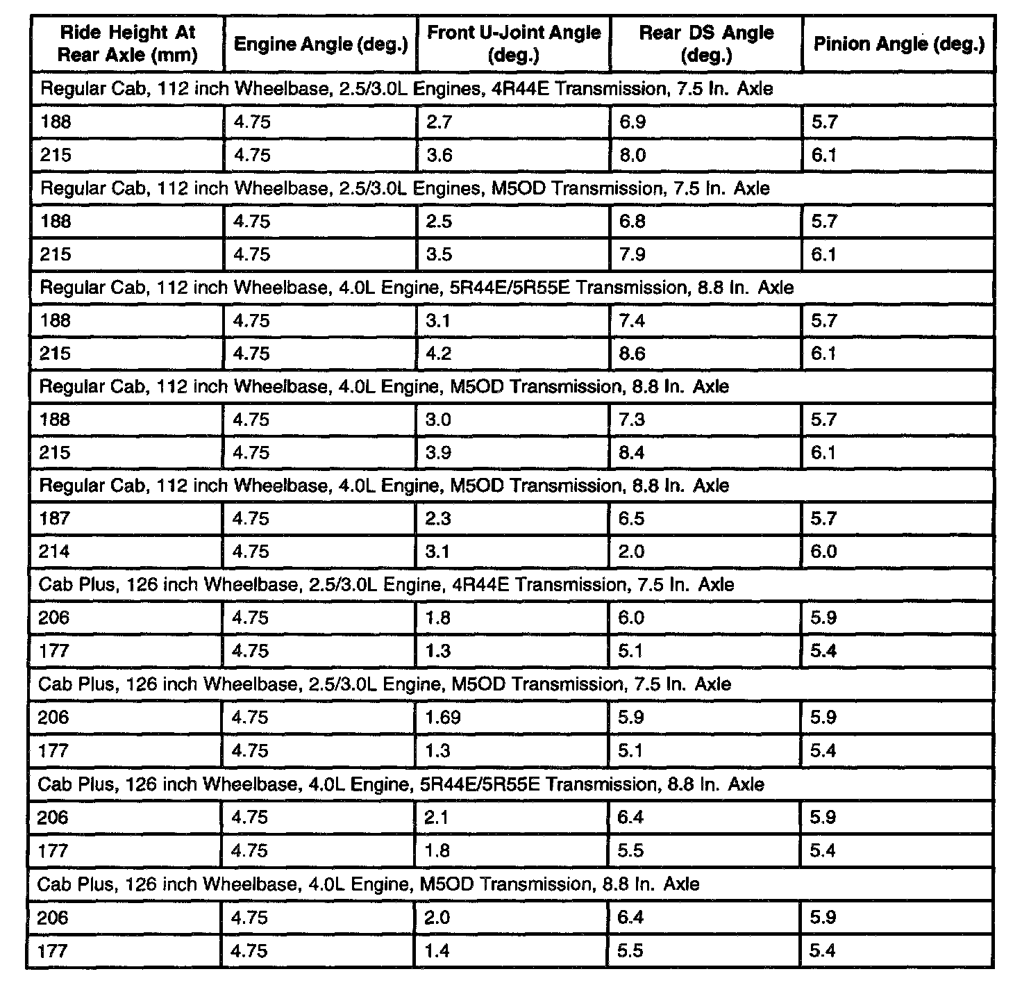 Rear Driveline Angles @ Curb (4x4)