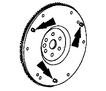 Note: Take care not to damage the flywheel dowel holes or the surface areas around the flywheel dowel during removal.